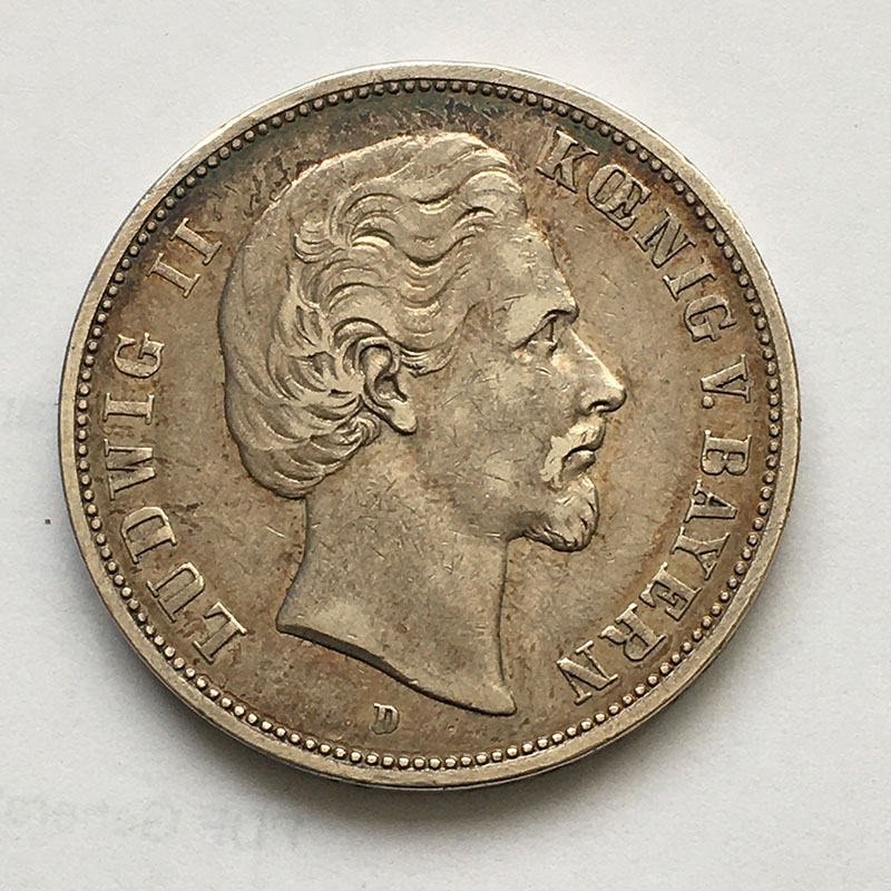 German states Bavaria 5 Marks 1875 GVF, light even attractive toning.