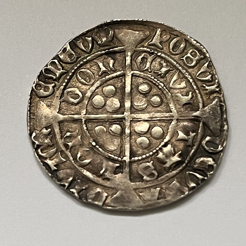 Henry VI Groat GVF+, London mint, S1917, Leaf pellet issue, Leaf on neck, fleur on breast, pellet by crown, extra pellet under CIVI and LON, mint mark cross on OBV only, probably close to as struck with no creases.