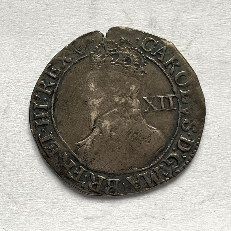 Charles I Shilling NVF, Group D, 3.1, mint mark Harp, slight flan crack.