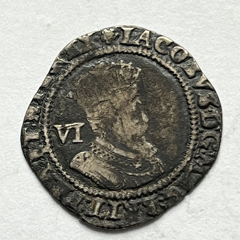 James I Sixpence 1605 AVF/VF, 4th bust mm Rose.