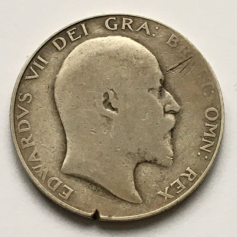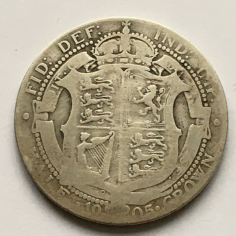Edward VII Halfcrown 1905 VG. Edge knock below bust and some light scratches.