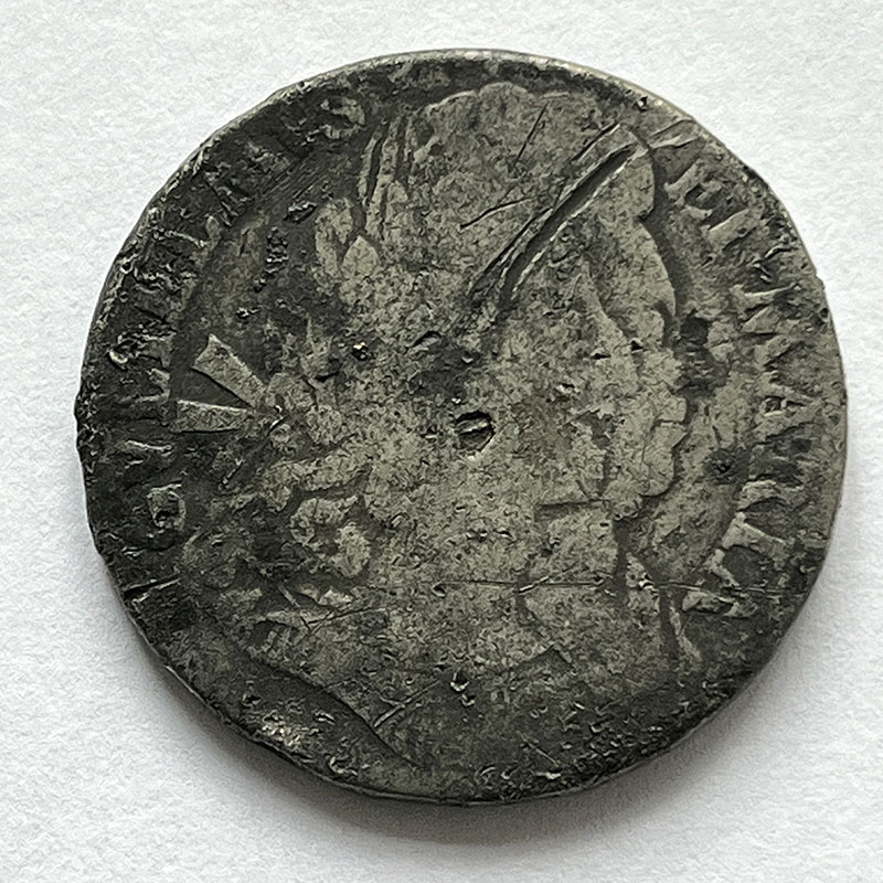 William and Mary Halfpenny 1690 NVF, Tin, scratch on OBV.