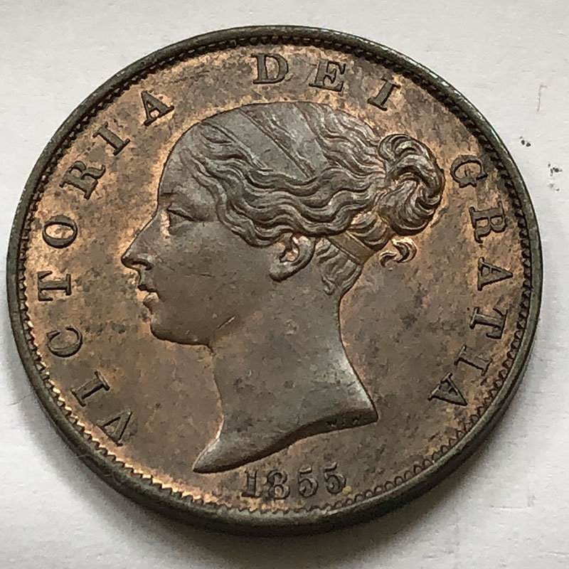 Victoria Halfpenny 1855 UNC, Choice, 40% Lustre.