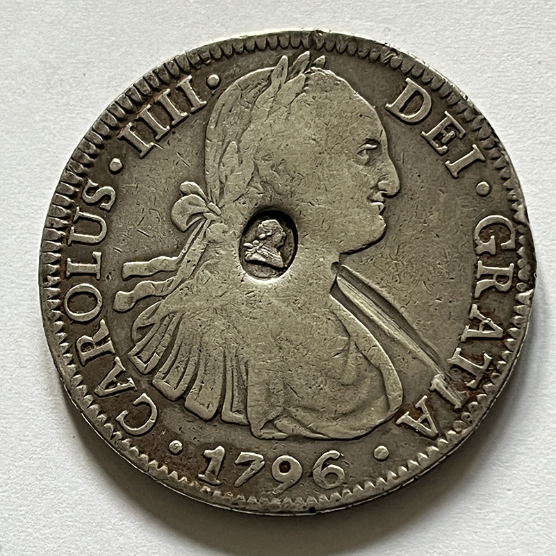 George III Dollar 1796 AVF, Counterstamp on Mexico 8 Reales, scratch on OBV.