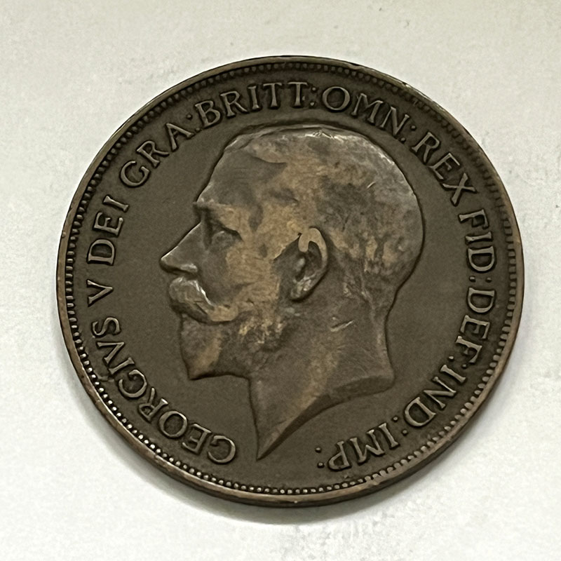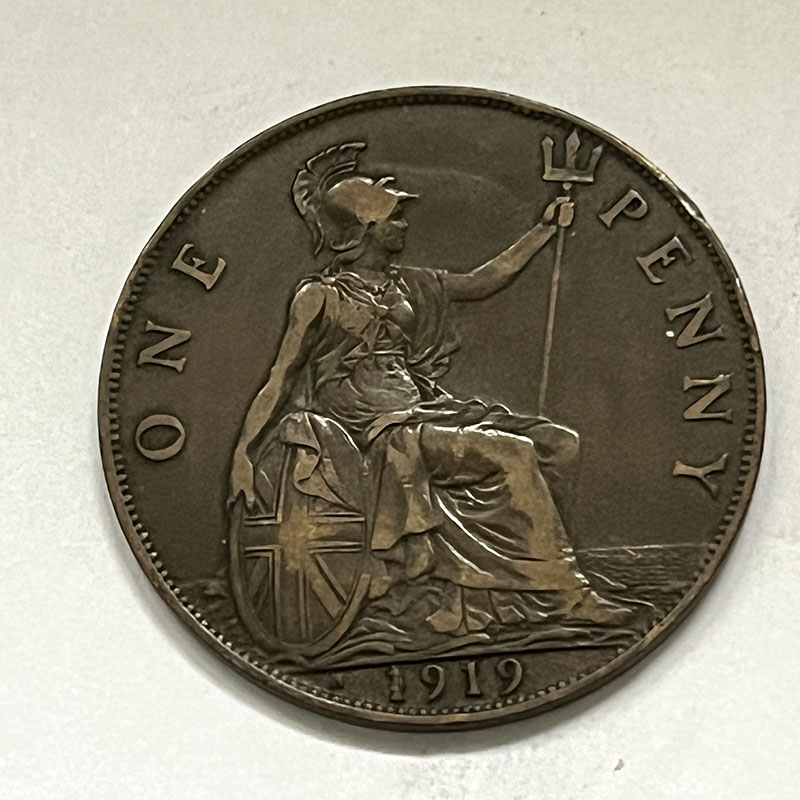 George V Penny 1919 GVF, mint H.