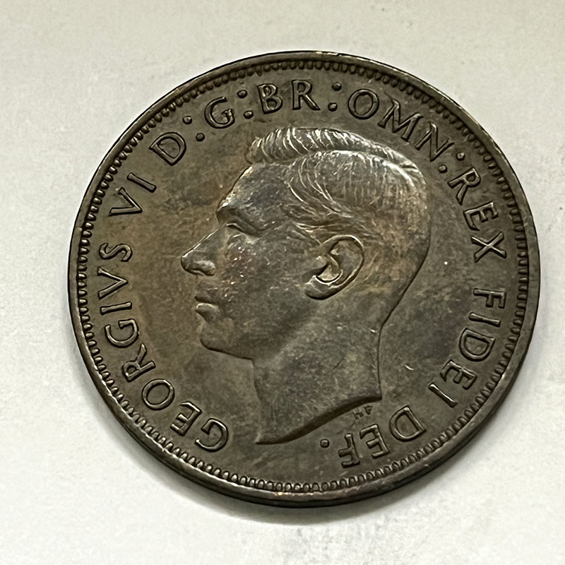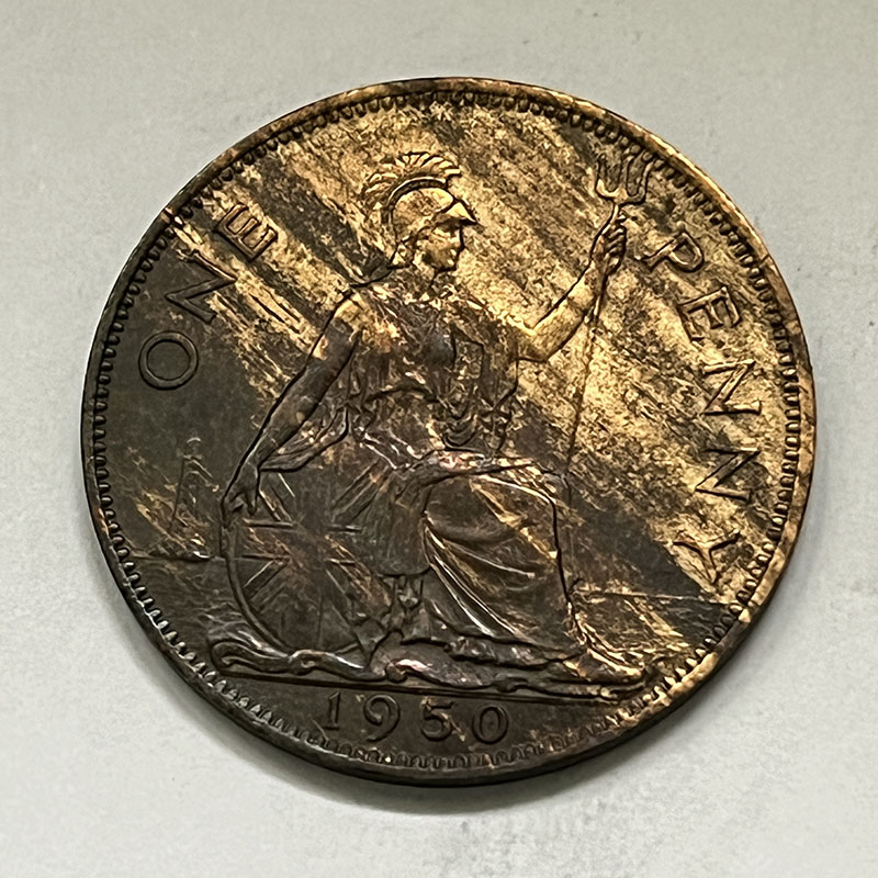 George V Penny 1950 UNC, Streaky lustre on REV.