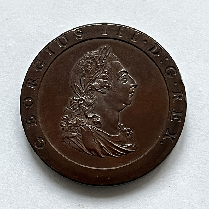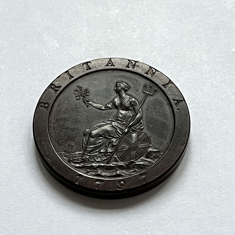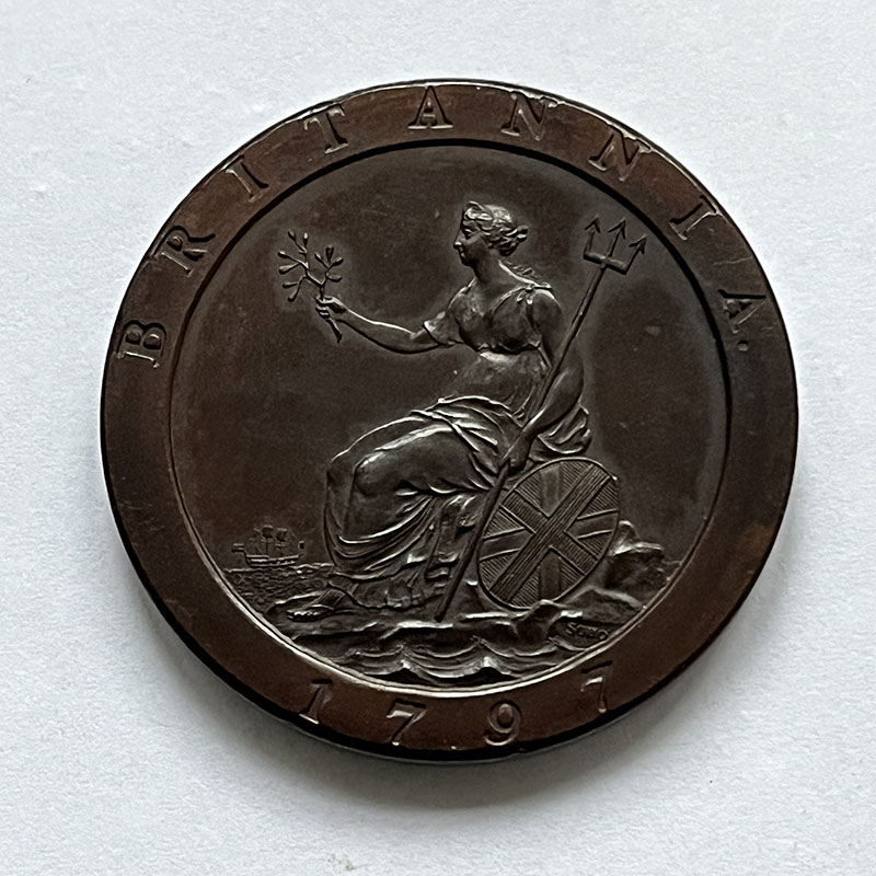 George III Penny 1797 Proof UNC, mirror like fields and with very minor edge blemish on OBV at 2 o’clock.