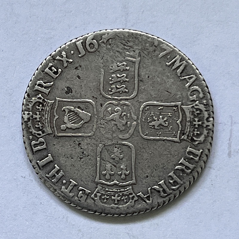 William III Shilling GVF, E, 3rd bust, OBV bright.