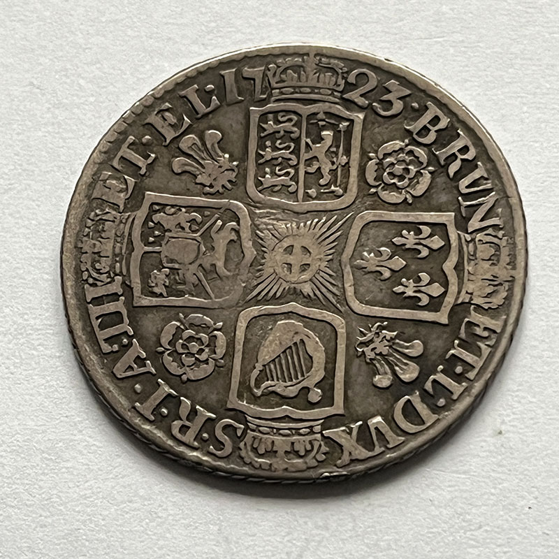 George I Shilling 1723 GF, Roses and Plumes.