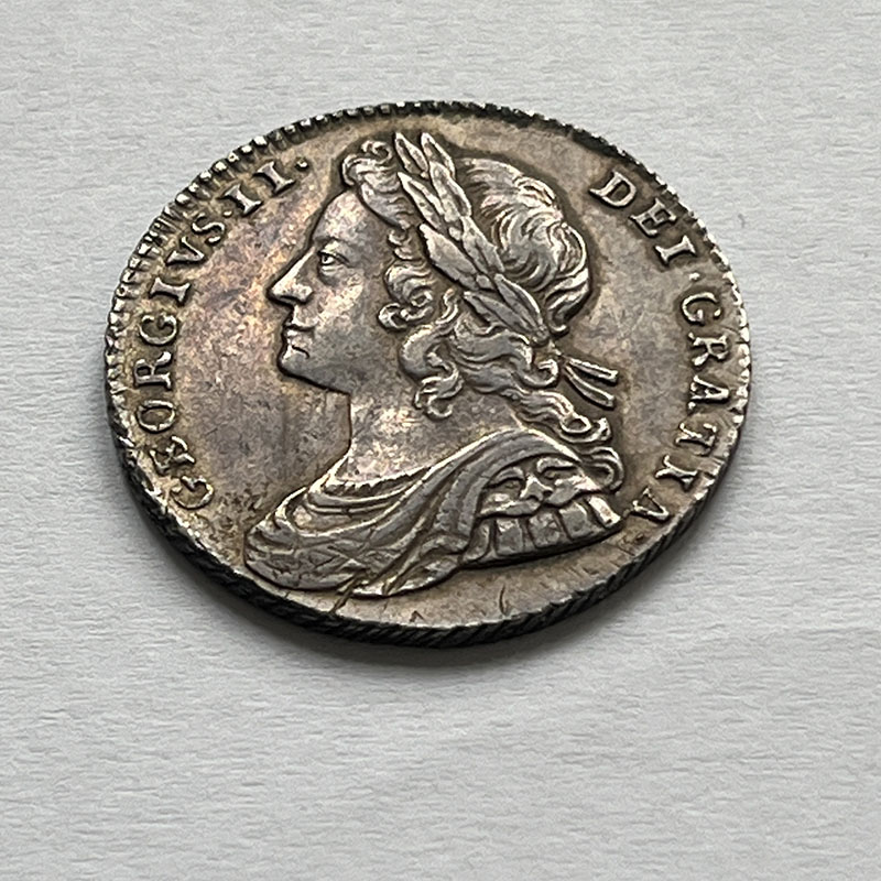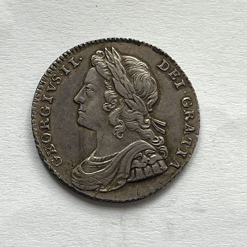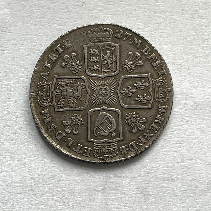 George II Shilling 1727 AEF, Plumes, a superb example with a choice cabinet tone, the best we have offered.