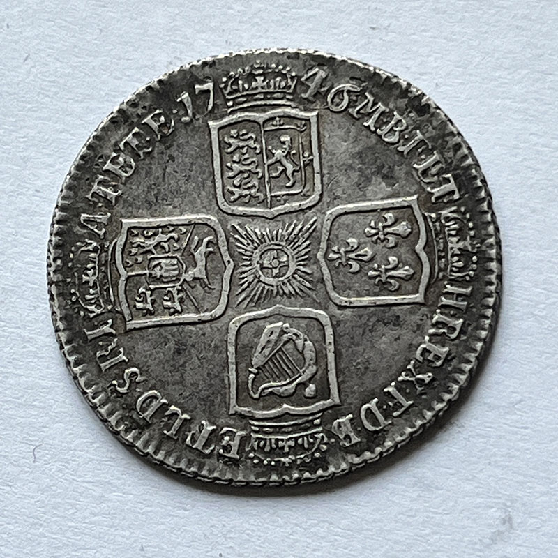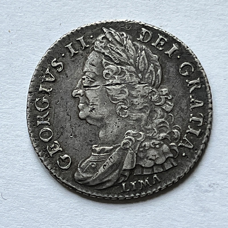 George II Shilling 1746/5 AEF, Lima, very rare but with scratch across bust.