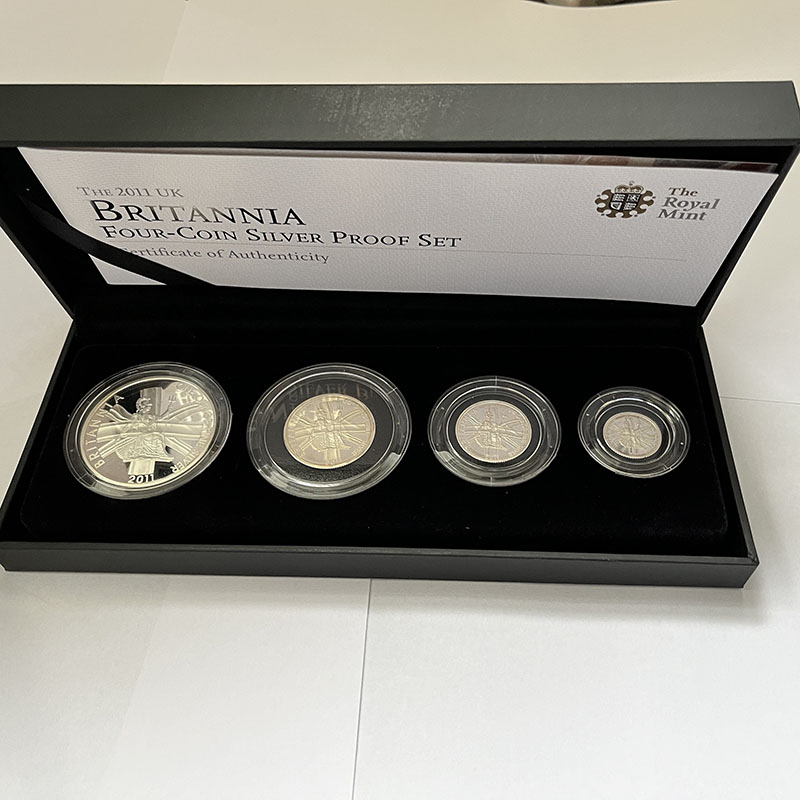 Elizabeth II Silver Britannia 2011 4 coin Proof set, cased as struck with COA, in outer Royal mint card box.