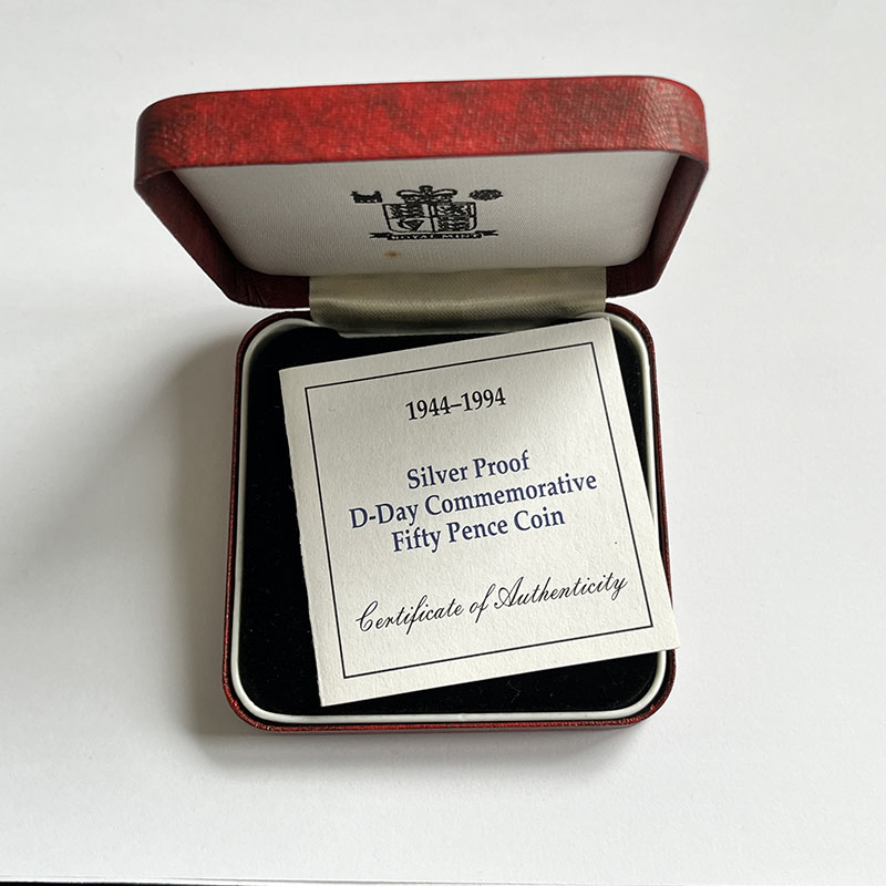 Elizabeth II Fifty Pence 1994 Silver Proof, D Day Anniversary, cased with certificate of authenticity.