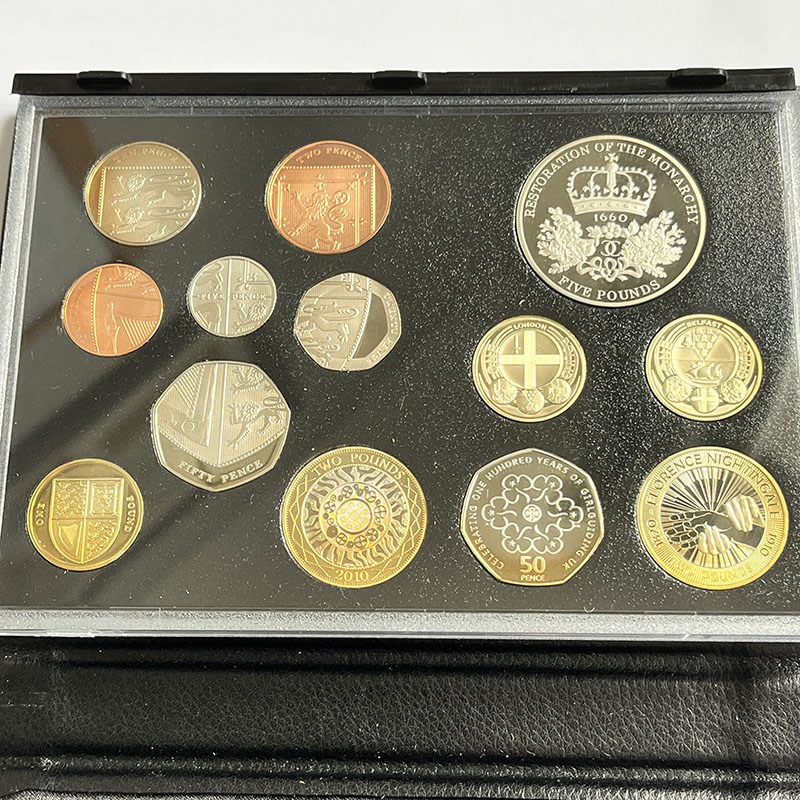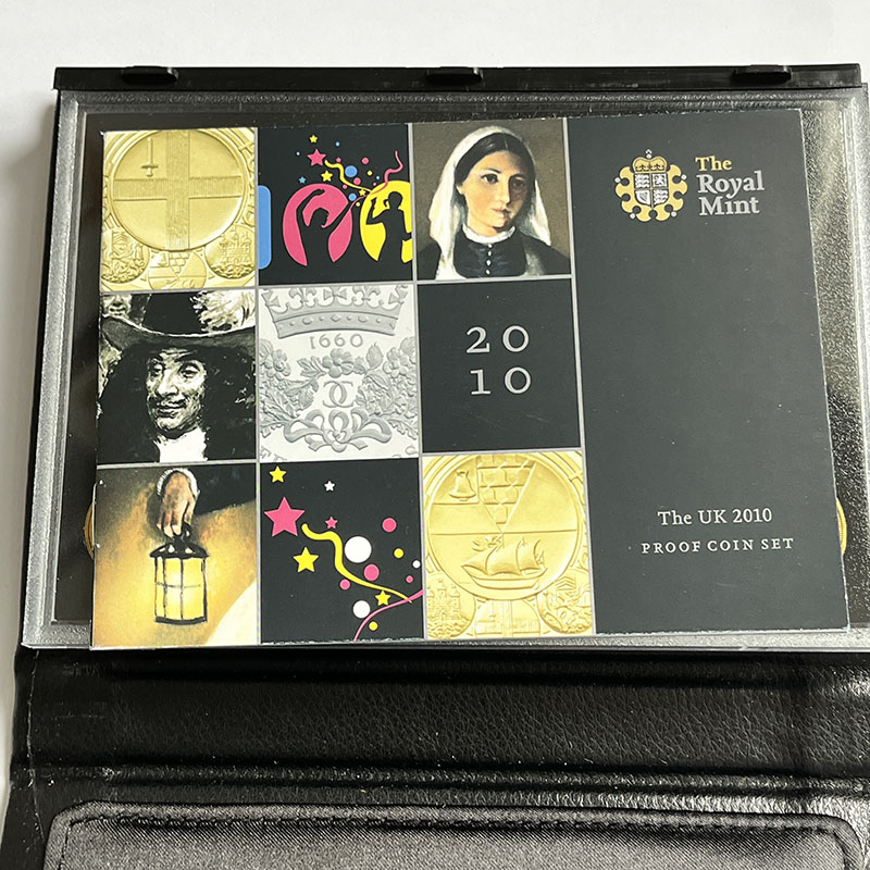 Elizabeth II Proof Set 2010, cased in black leather dispay case with certificate of authenticity and outer card box.