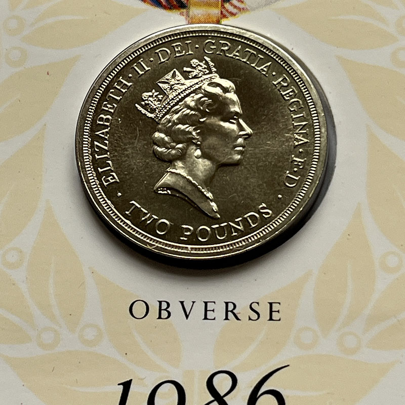 Elizabeth II Two Pounds 1986 BU, Commonwealth games, in Royal Mint presentation pack.