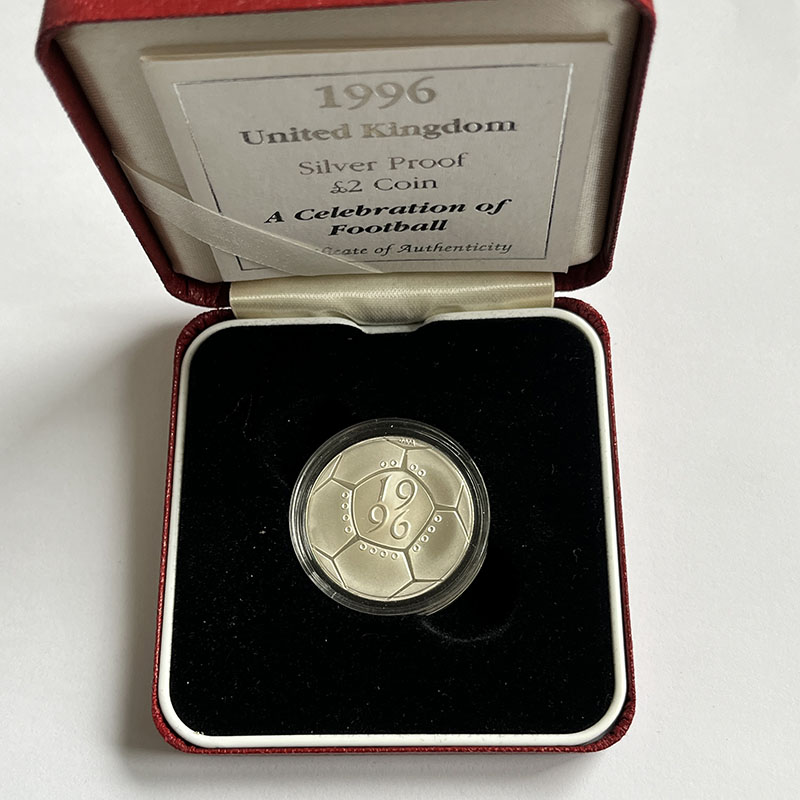 Elizabeth II Two Pounds 1996 Silver Proof, Celebration of Football, cased with Certificate of authenticity.